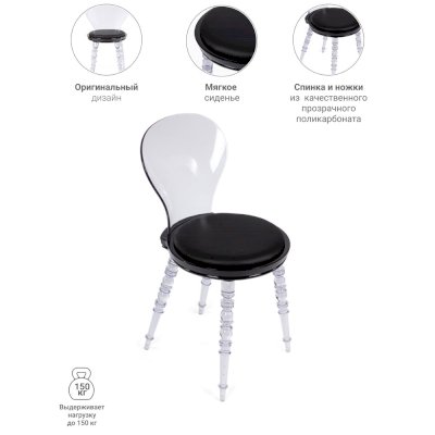 Дизайнерский стул Babel это традиционный классический дизайн мебели и сочетание элементов из пластика и эко кожи. Главным украшение стула стали резные пластиковые ножки. Удобное круглое сиденье и прозрачная вогнутая спинка обеспечивают комфорт использования и эргономику стула.