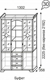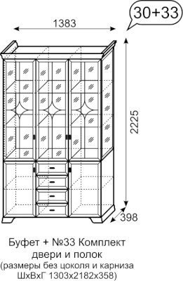 Комплект наполнения (двери и полки в центральную секцию для буфета №30 без зеркала на заднюю стенку) №33