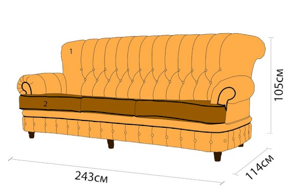 Также диван оборудован механизмом раскладывания «французская раскладушка», что позволит использовать его в качестве спального места для гостей. По желанию клиента диван комплектуется банкеткой и креслом "Лувр".