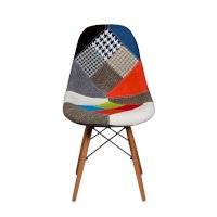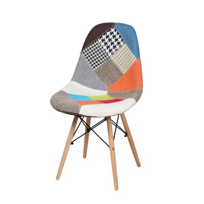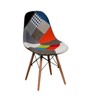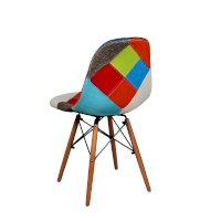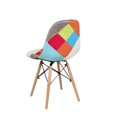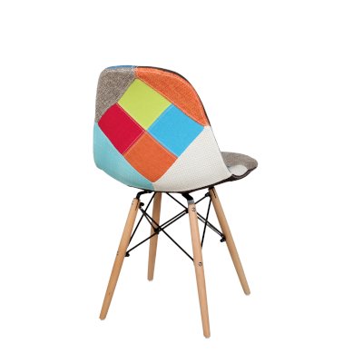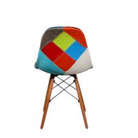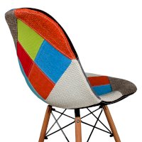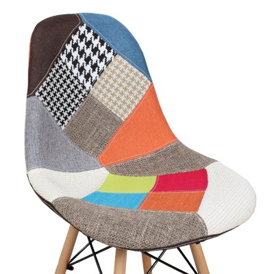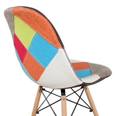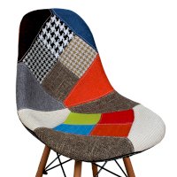 Сиденье и спинка обшиты тканью из лоскутов в стиле пэчворк (лоскутное шитьё).