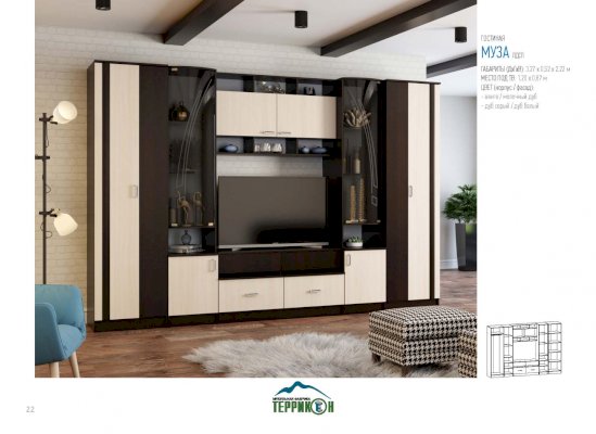 Гостиная Муза (Террикон) - за 45 894 руб. в Магнитогорске. Купите на сайте magnitogorsk.onlinemarketmebeli.ru или по телефону 8(800)505-30-63 уже сегодня! Уточнить наличие, комплектацию, актуальную цену можно бесплатно у менеджера ежедневно. Закажите Гостиная Муза (Террикон) до конца акции! Доступна покупка в кредит, рассрочку. Доставим со склада или на заказ.