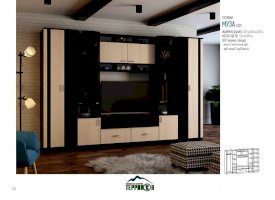 Для удобного хранения большого количества личных вещей идеально подходит гостиная «Муза». Она состоит из вместительных шкафов, полок, ящиков, ниш. Качественна сборка, высококлассные материалы и надежная фурнитура обеспечивают удобство эксплуатации мебели, а также длительный срок ее службы. Элегантный современный дизайн — одно из важнейших достоинств модели.