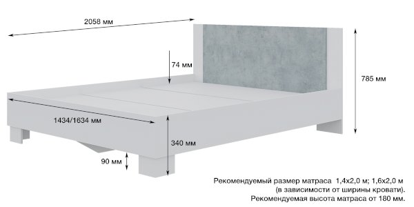 Размер спального места, см 140х200 / 160х200