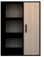 Стандартная комплектация – слева открытые полки. Справа – шкафчик, закрытый створкой.