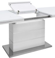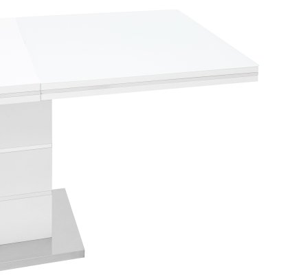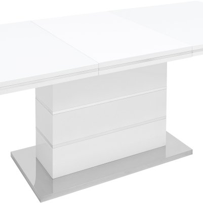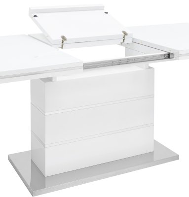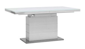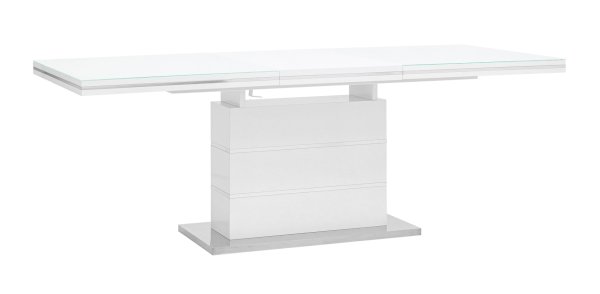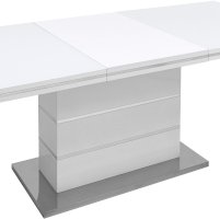 Раскладной обеденный стол белого цвета. Размеры столешницы 160*90 см. Дополнительно раскладывается до 215 см. Стол подойдет для любого современного интерьера.