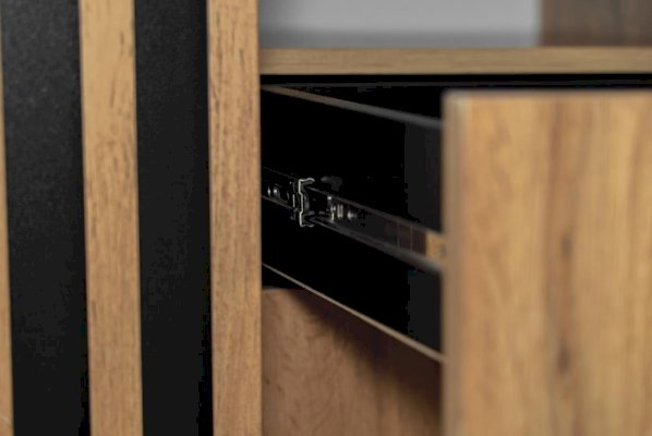 Торцы тумбы сверху и снизу покрыты черной пленкой – выглядят как рамки и подчеркивают границы изделия. Таким образом достигается цветовой контраст, что выглядит очень эффектно!