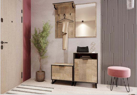 Тумба из коллекции ФОЛК легко впишется в интерьер прихожей в стиле Лофт, придав ей современный и монументальный вид. Черная лаконичная ручка и металлические опоры подчеркивают оригинальный дизайн мебели, а черная кромка эффектно выделяет фасад изделия.