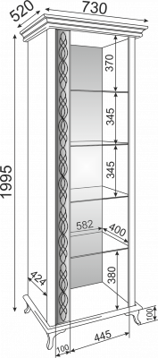 • Пенал имеет 4 съемные стеклянные полки.