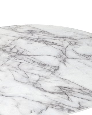 Стильный обеденный стол с рисунком белого мрамора. Круглая столешница выполнена из МДФ - прочный, экологически безопасный материал, устойчив к перепадам температур и повышенной влажности. Поверхность столешницы декорирована под белый мрамор, который лаконично сочетается с золотыми ножками. Дизайн стола дополнит интерьер кухни, зала с любыми комплектами стульев в современном стиле.