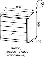 Комод №13 Дуб сакраменто/Белый снег глянец