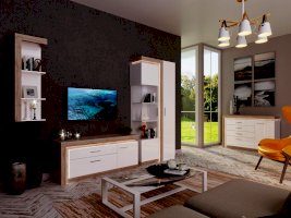 Модульная гостиная Люмен Дуб сакраменто/Белый снег глянец (Ижмебель)