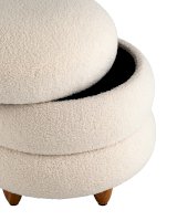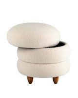 Круглый пуфик Винни в скандинавском стиле. Обивка выполнена из ткани тедди - очень мягкий и приятный на ощупь материал. Прочный каркас из фанеры выдерживает нагрузку до 150 кг. Вместительный ящик для хранения мелочей внутри обит плотной тканью. Полностью съемная крышка придаёт пуфу объемность, идеально дополняя общий дизайн. Ножки из светлого массива дерева гармонично сочетаются с белой обивкой. Пуф Винни отличный вариант для спальни, детской и прихожей.