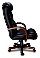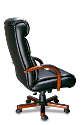 Кресло с высокой спинкой, с подлокотниками дугообразной не замкнутой формы с мягкими накладками обитыми в цвет кресла.