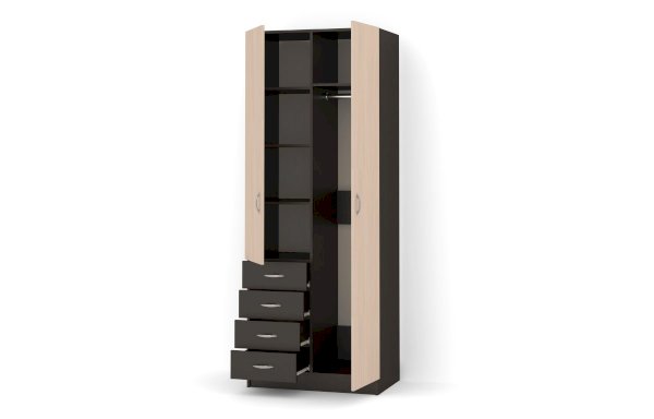 Данное изображение представлено в следующих цветах ЛДСП: корпус - Венге Цаво, фасады - Венге Цаво / Дуб молочный.