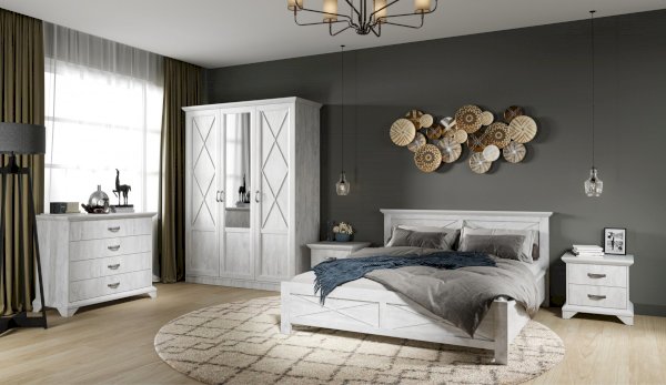 Вместительный комод Лорена в стиле неоклассика создает уютную атмосферу в интерьере гостиной или спальни. Белые фасады с фактурой и рисунком натурального дерева наполняют комнату светом, делают ее просторнее. Металлические ручки цвета состаренного серебра придают изысканность, а фигурные ножки и декоративный профиль крышки подчеркивают стилистику коллекции. В выдвижных ящиках на телескопических направляющих удобно хранить любые предметы одежды и личные вещи. Выполнен из экологичных материалов.