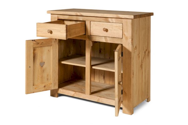 Тумба KTB22 - за двумя распашными дверками одна сплошная полка. Два выдвижных ящичка без направляющих на деревянных полозьях.