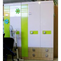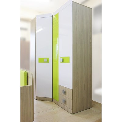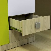 Мебель для детей «Стиль», выполненная в цвете «Лайм» подойдет как для младших, так и для старших школьников. Корпуса детской «Стиль» выполнены из ЛДСП толщиной 16 и 22 мм. Торцы обработаны кромкой ПВХ. Фасады выполнены из плиты МДФ, покрытых глянцевой пленкой белого цвета. Декоративные элементы на фасадах выполнены из МДФ с глянцевой пленкой ПВХ, по периметру подчеркнуты фрезеровкой. Все петли на фасадах с доводчиками. Направляющие на выкатных ящиках - шариковые, полного выдвижения. Мякгие элементы, скругленные углы, пластиковые ручки - все служит безопасности ребенка и придаёт эстетичный внешний вид.