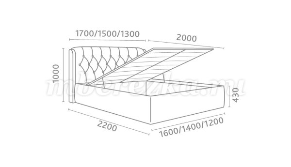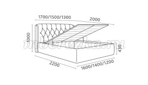 Кровать доступна в 3-х размерах:  1200, 1400, 1600 мм.