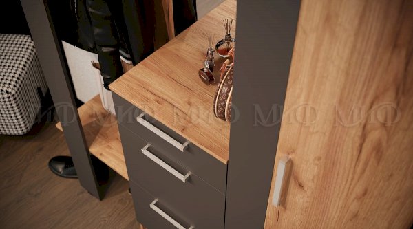 Модульная прихожая Мартина Графит/Дуб крафт (Миф) - за 13 656 руб. в Магнитогорске. Купите на сайте magnitogorsk.onlinemarketmebeli.ru или по телефону 8(800)505-30-63 уже сегодня! Уточнить наличие, комплектацию, актуальную цену можно бесплатно у менеджера ежедневно. Закажите Модульная прихожая Мартина Графит/Дуб крафт (Миф) до конца акции! Доступна покупка в кредит, рассрочку. Доставим со склада или на заказ.