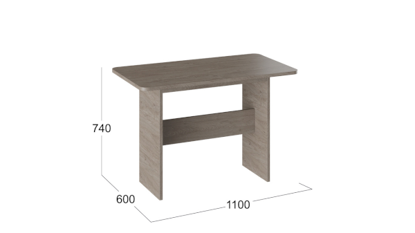 Стол изготовлен из ЛДСП 22 мм, в цвете «Дуб сонома трюфель» - один из самых популярных вариантов отделки мебели в современном интерьере. Данный оттенок привносит теплоту, элегантность и уют в любое помещение. В обработке торцов используется кромка ПВХ.