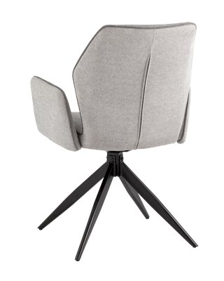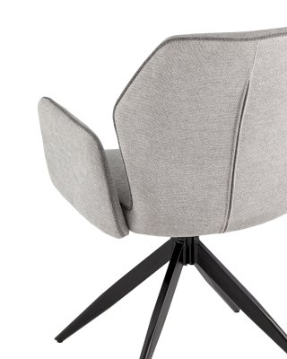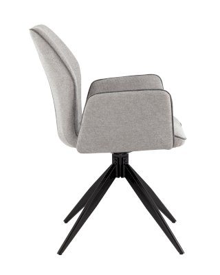 Мягкий стул со спинкой анатомической формы и удобными подлокотниками подарит комфорт и уют. Тканевая обивка оформлена декоративным кантом. Прочные ножки изготовлены из металла в черном цвете, поэтому обеспечивают хорошую устойчивость и делают стул оригинальным. Подпятники на ножках препятствуют скольжению и помогут защитить напольное покрытие от царапин. Изделие будет прекрасно смотреться как отдельный предмет мебели, так и в комплекте с обеденным или письменным столом.