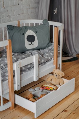 Выдвижной ящик на колесиках для кроватки Dreams Смарт. Для экономии места и хранения нужных вещей. Ящик имеет размеры 700*700мм, в который отлично уберутся игрушки или запасной комплект постельного белья.
