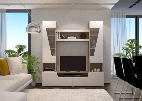 Отсутствие ручек является особенностью серии "Анталия", что придает современный и лаконичный внешний вид. В состав гостиной "Анталия" входит вместительный шкаф, а добавив комод можно получить еще больше места для хранения.