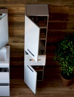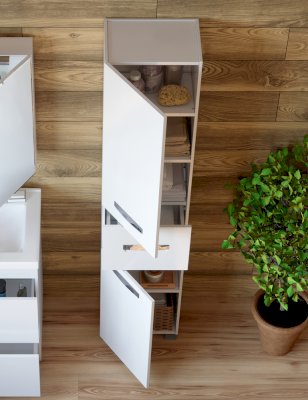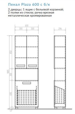 2 дверцы; 1 ящик; 3 полки ЛДСП; ручка врезная металлическая хромированная.