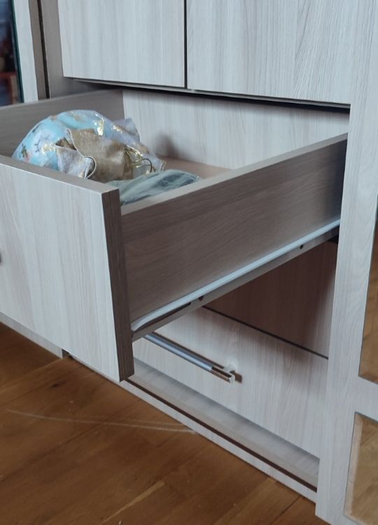 Сложно вы двигаются ящики комода, надо максимально раздвигать двери купе.
