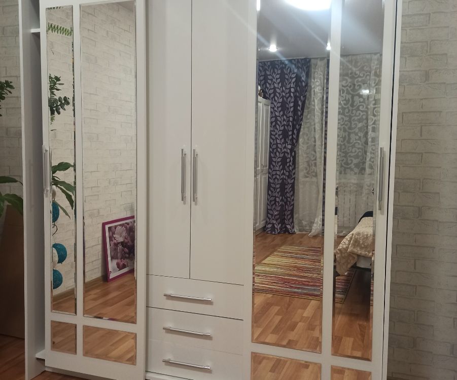 Инструкция подробная, собирать по ней легко. Сам шкаф тяжело самостоятельно поднять, вдвоем нормально. В комплекте фурнитуры есть всё необходимое, даже лишнее что-то осталось, про запас. Шкаф вместительный. Зеркала пришли хорошо упакованные, при доставке мы их проверили вместе с доставщиком! Обязательно проверяйте. По габаритам, цвету всё соответствует. Единственное, после сборки у меня возникла сложность с зеркалами, обычное средство для окон и зеркал их не брало, но с усилием оттереть можно.