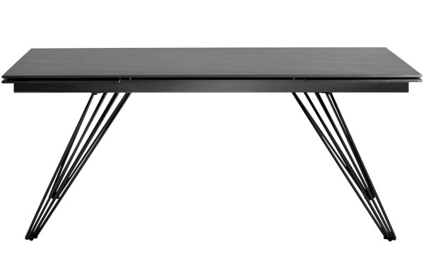 Стильный в сдержанным образе раскладной стол станет прекрасным дополнением для кухни и обеденной зоны. Столешница из темной керамики устойчива к повреждениям и истиранию, долговечный материал с прочной текстурой. По бокам стола расположены дополнительные раздвижные элементы, которые увеличивают полезную площадь столешницы. Металлический каркас лаконично вписывается в образ за счет оригинальных ножек из нескольких линий. Основание оснащено заглушками, которые не позволяют металлическим частям соприкасаться с полом и портить покрытие при перемещении.