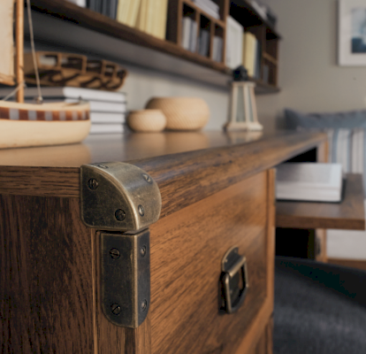 Оригинальный дизайн фасада, точно повторяющий текстуру отполированного дерева отлично впишется в современный интерьер. Дополняет общую композицию необыкновенная форма ручек и закругленные металлические края элементов мебели. В коллекцию Indiana входит большой ассортимент элементов мебели, который поможет создать интересный интерьер в комнате.