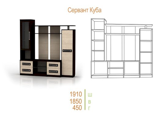 Модульная серия Куба — это отличное решение потребностей современного покупателя. Стильный дизайн, строгость линий, благородный цвет и качество исполнения — вот составляющие успеха этой гостиной.
