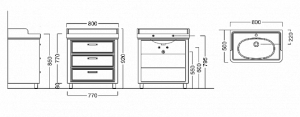 Тумба-умывальник Pompei 80, 3 ящика