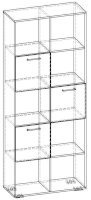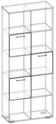 Применение задней стенки из ЛДСП (в ячейках с фасадами) позволяет использовать данный стеллаж для зонирования пространства (чтобы предотвратить опрокидывание, необходимо обеспечить крепление стеллажа к стене).