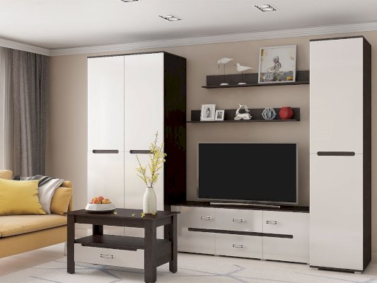 Модульная гостиная «Ким» выполнена в одном стиле и цветовой гамме со спальней «Ким», что позволяет подобрать мебель для квартиры любой площади. Отличается белыми глянцевыми фасадами. В нашем интернет-магазине вы можете собрать гостиную из модулей на свой вкус.