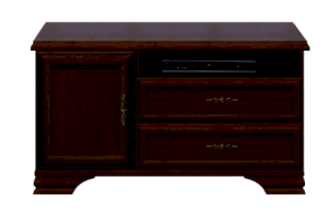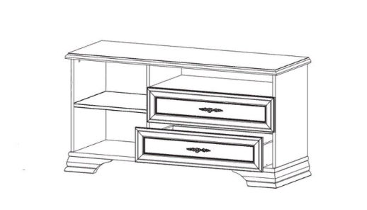 Тумба имеет два вместительных выдвижных ящика и нишу, закрывающуюся распашной дверцей