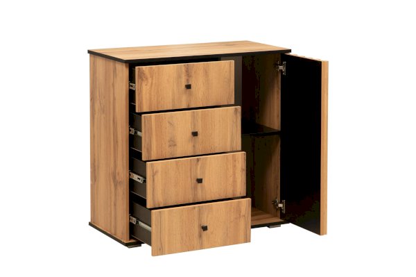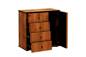 Комод – немного меньше модели 51.04, но сохранил тот же функционал. У него есть выдвижные ящики и полки для вещей за распашной дверцей.