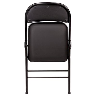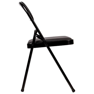 Материал обивки - качественный кожзаменитель с повышенной износостойкостью. Складная конструкция сэкономит место при перевозке и хранении. Прочная металлическая рама и металлическое основание сиденья обеспечат долговечность эксплуатации, а пластиковые насадки на ножках не дадут испортить напольное покрытие. В набивке спинки и сиденья использован поролон высокой плотности. Кресло способно выдерживать нагрузку до 110 кг.
