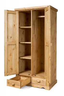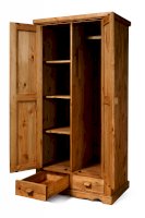 Наполнение: За дверкой слева 3 полки, за дверкой справа съёмная штанга. Два выдвижных ящика (без направляющих, на деревянных полозьях)