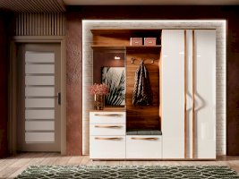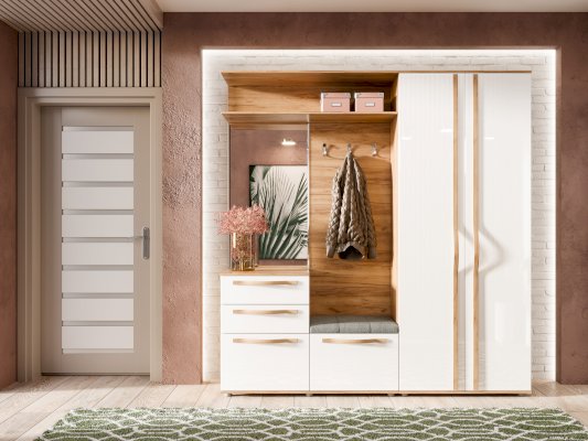 • 2 полки, 1 штанга выдвижная для одежды за распашными дверями с зеркалом