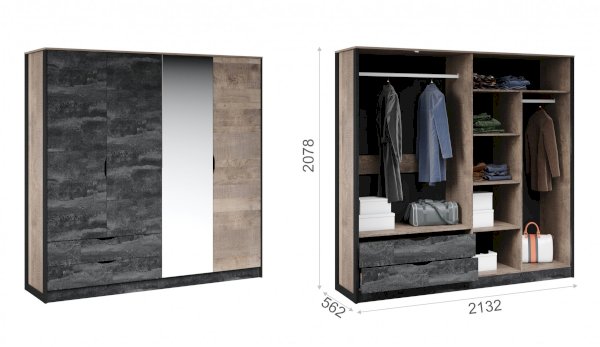 Наполнение: полки + штанги + выдвижные ящики