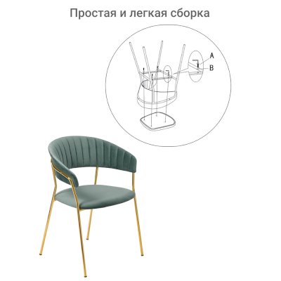 Мягкие спинка и сидение, оригинальный каркас и опоры с декоративным эффектом технологии золочения хромированных деталей.