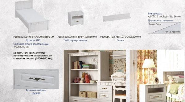 Модульная спальня детская Прованс (МБГ) - за 37 581 руб. в Магнитогорске. Купите на сайте magnitogorsk.onlinemarketmebeli.ru или по телефону 8(800)505-30-63 уже сегодня! Уточнить наличие, комплектацию, актуальную цену можно бесплатно у менеджера ежедневно. Закажите Модульная спальня детская Прованс (МБГ) до конца акции! Доступна покупка в кредит, рассрочку. Доставим со склада или на заказ.