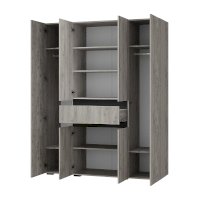 Четырехстворчатый шкаф «Мрия» – это настоящая находка для семьи, а также для обладателей большой коллекции одежды. Два крайних отсека идеально подойдут для хранения верхней одежды, костюмов и рубашек. Центральная секция с полками и ящиком - для постельного и нижнего белья, также здесь можно хранить обувь.